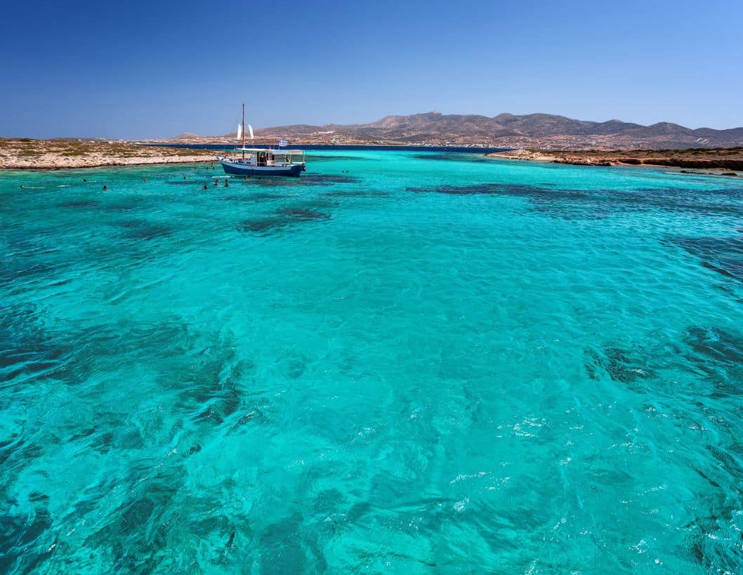 Arrivo mattutino a Poliegos, un’isola disabitata nota per le sue splendide spiagge e il turchese